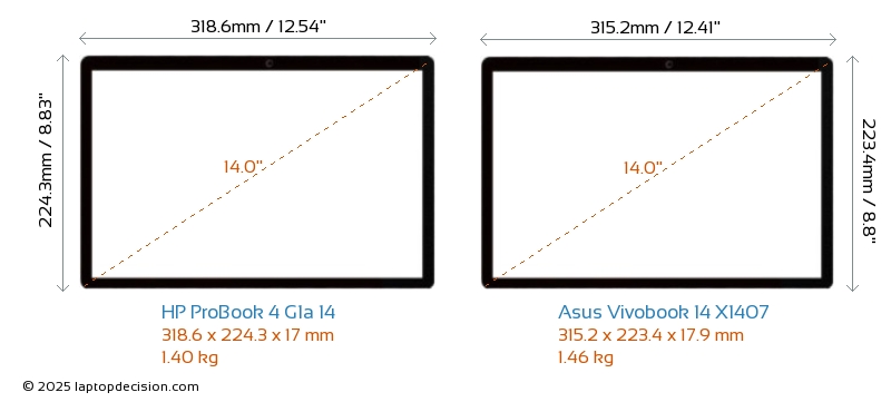 HDMIBoth ProBook 4 G1a 14 and Vivobook 14 X1407 feature an HDMI port. ProBook 4 G1a 14 offers 1x HDMI 2.1, while Vivobook 14 X1407 offers 1x HDMI 1.4.