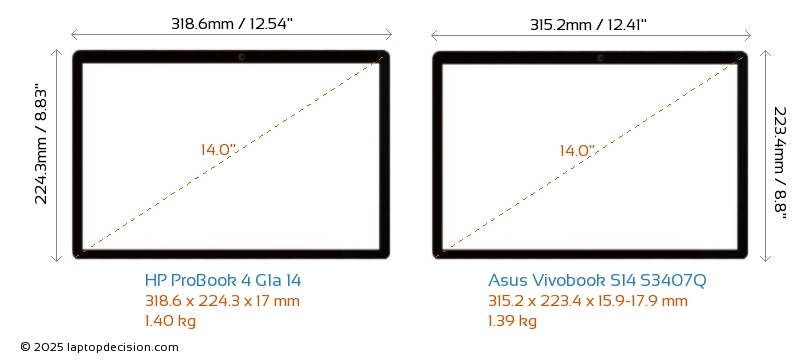 HDMIBoth ProBook 4 G1a 14 and Vivobook S14 S3407Q feature an HDMI port (1x HDMI 2.1) for connecting to external monitors.