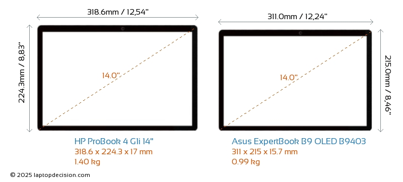 Thunderbolt ExpertBook B9 OLED B9403 is equipped with Thunderbolt 4 port. ProBook 4 G1i 14" does not have Thunderbolt port.