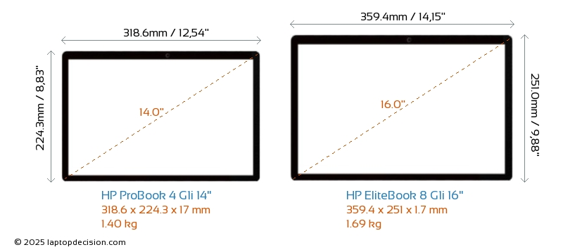 USBBoth ProBook 4 G1i 14" and EliteBook 8 G1i 16" have USB-A ports. ProBook 4 G1i 14" has 1x USB 3.2 USB-A ports, while EliteBook 8 G1i 16" has 2x USB 3.2 USB-A ports.Both ProBook 4 G1i 14" and EliteBook 8 G1i 16" have USB Type-C ports. ProBook 4 G1i 14" has 2x USB 4.0 USB Type-C ports, while EliteBook 8 G1i 16" has 3x USB 4.0 USB Type-C ports.