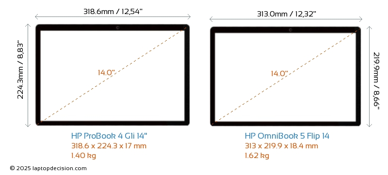 USBBoth ProBook 4 G1i 14" and OmniBook 5 Flip 14 have USB-A ports. ProBook 4 G1i 14" has 1x USB 3.2 USB-A ports, while OmniBook 5 Flip 14 has 2x USB 3.2 USB-A ports.Both ProBook 4 G1i 14" and OmniBook 5 Flip 14 have USB Type-C ports. ProBook 4 G1i 14" has 2x USB 4.0 USB Type-C ports, while OmniBook 5 Flip 14 has 2x USB 3.2 USB Type-C ports.