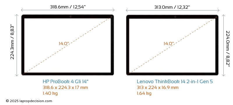 HDMIBoth ProBook 4 G1i 14" and ThinkBook 14 2-in-1 Gen 5 feature an HDMI port (1x HDMI 2.1) for connecting to external monitors.