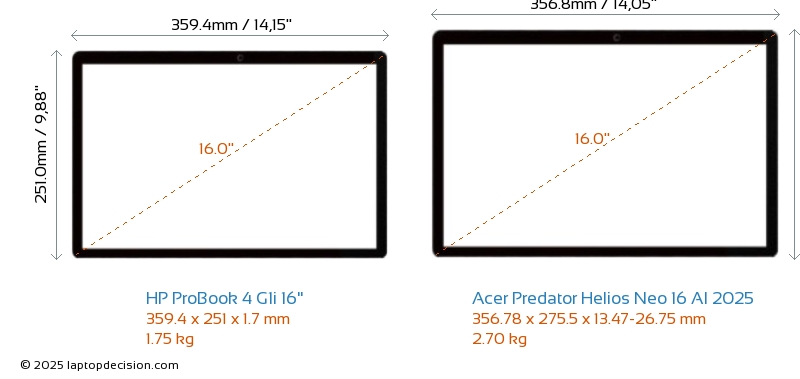 HDMIBoth ProBook 4 G1i 16" and Predator Helios Neo 16 AI 2025 feature an HDMI port (1x HDMI 2.1) for connecting to external monitors.