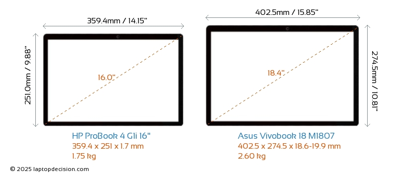 HDMIBoth ProBook 4 G1i 16" and Vivobook 18 M1807 feature an HDMI port (1x HDMI 2.1) for connecting to external monitors.