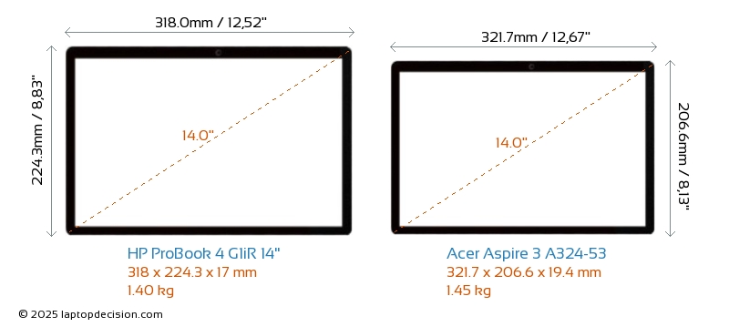 Audio JackBoth ProBook 4 G1iR 14" and Aspire 3 A324-53 are equipped with a 3.5mm Audio Jack, providing seamless connection to headphones and speakers.