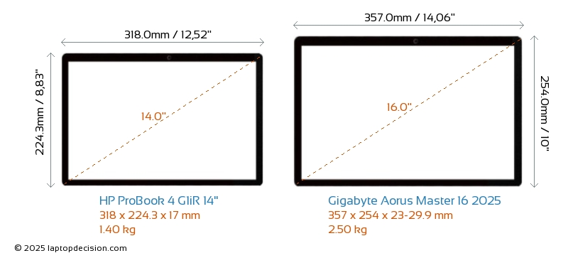 HDMIBoth ProBook 4 G1iR 14" and Aorus Master 16 2025 feature an HDMI port (1x HDMI 2.1) for connecting to external monitors.