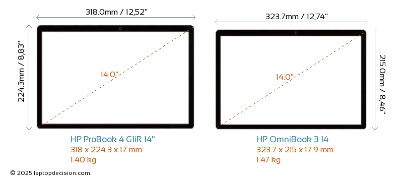 HDMIBoth ProBook 4 G1iR 14" and OmniBook 3 14 feature an HDMI port. ProBook 4 G1iR 14" offers 1x HDMI 2.1, while OmniBook 3 14 offers 1x HDMI 1.4.