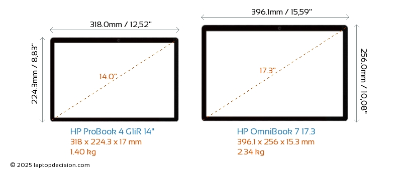 Thunderbolt OmniBook 7 17.3 is equipped with Thunderbolt 4 port. ProBook 4 G1iR 14" does not have Thunderbolt port.