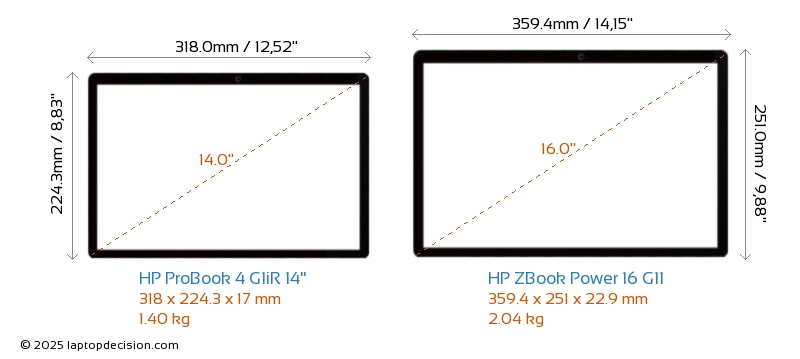 HDMI ProBook 4 G1iR 14" features an HDMI port (1x HDMI 2.1) for connecting to external monitors. ZBook Power 16 G11 does not have an HDMI port.