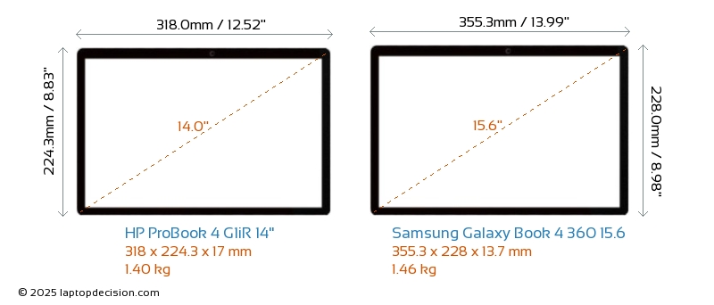 HDMIBoth ProBook 4 G1iR 14" and Galaxy Book 4 360 15.6 feature an HDMI port. ProBook 4 G1iR 14" offers 1x HDMI 2.1, while Galaxy Book 4 360 15.6 offers 1x HDMI 1.4.