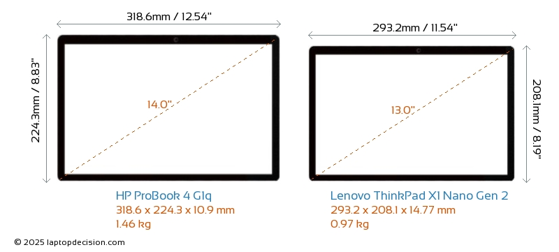 HDMI ProBook 4 G1q features an HDMI port (1x HDMI 2.1) for connecting to external monitors. ThinkPad X1 Nano Gen 2 does not have an HDMI port.