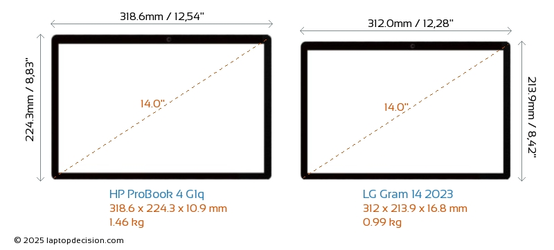 HDMIBoth ProBook 4 G1q and Gram 14 2023 feature an HDMI port. ProBook 4 G1q offers 1x HDMI 2.1, while Gram 14 2023 offers 1x HDMI 2.0.