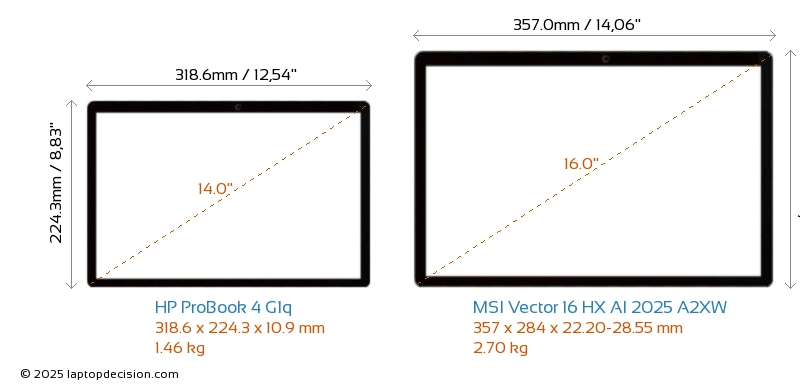 HDMIBoth ProBook 4 G1q and Vector 16 HX AI 2025 A2XW feature an HDMI port (1x HDMI 2.1) for connecting to external monitors.