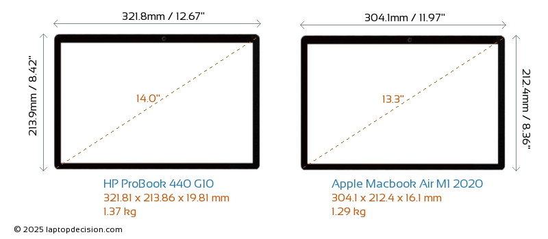 HDMI ProBook 440 G10 features an HDMI port (1x HDMI 2.1) for connecting to external monitors. Macbook Air M1 2020 does not have an HDMI port.