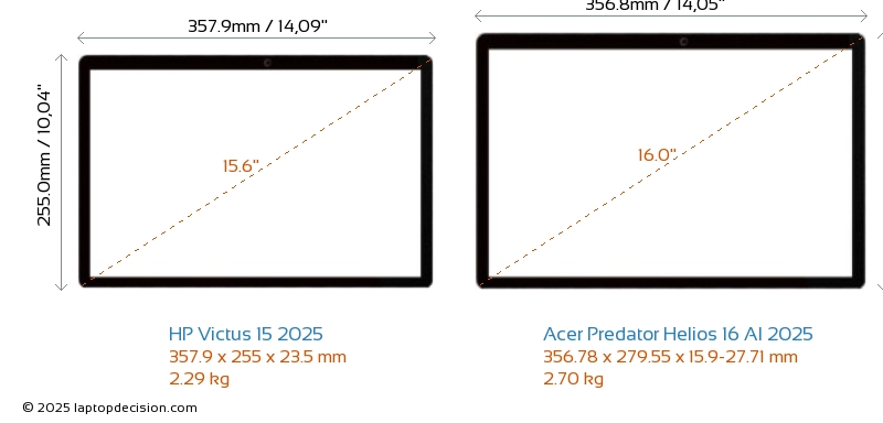 USBBoth Victus 15 2025 and Predator Helios 16 AI 2025 have USB-A ports. Victus 15 2025 has 2x USB 3.2 USB-A ports, while Predator Helios 16 AI 2025 has 3x USB 3.2 USB-A ports.Both Victus 15 2025 and Predator Helios 16 AI 2025 have USB Type-C ports. Victus 15 2025 has 1x USB 3.2 USB Type-C ports, while Predator Helios 16 AI 2025 has 2x USB 4.0 USB Type-C ports.