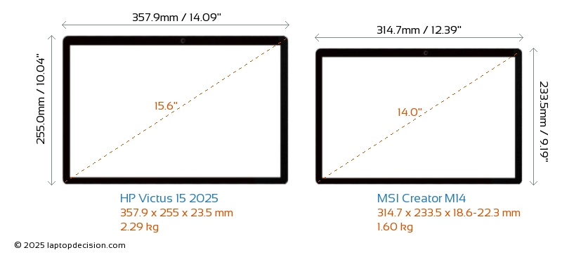 HDMIBoth Victus 15 2025 and Creator M14 feature an HDMI port (1x HDMI 2.1) for connecting to external monitors.