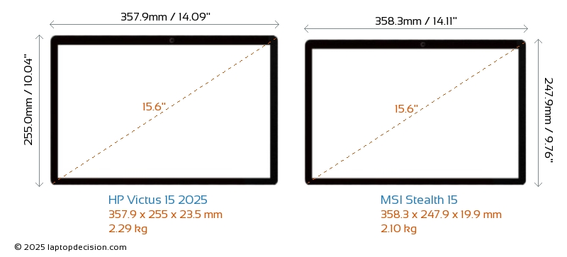 USBBoth Victus 15 2025 and Stealth 15 feature 2x USB 3.2 USB-A ports.Both Victus 15 2025 and Stealth 15 have USB Type-C ports. Victus 15 2025 has 1x USB 3.2 USB Type-C ports, while Stealth 15 has 2x USB 3.2 USB Type-C ports.
