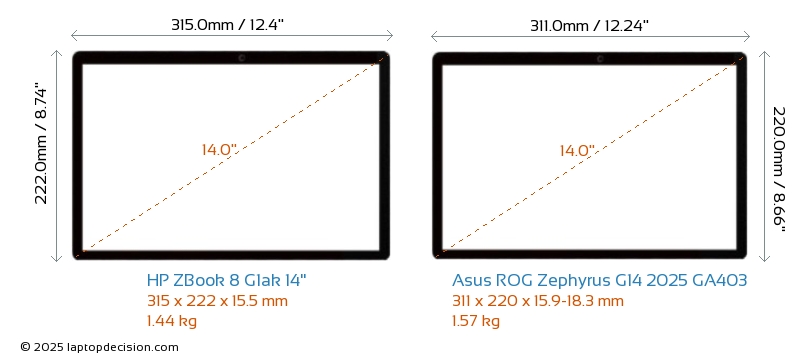 HDMIBoth ZBook 8 G1ak 14" and ROG Zephyrus G14 2025 GA403 feature an HDMI port (1x HDMI 2.1) for connecting to external monitors.