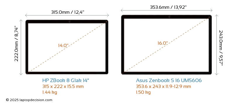 SD Card Reader Zenbook S 16 UM5606 is equipped with an SD Card Reader for easy access to memory cards. ZBook 8 G1ak 14" does not have an SD Card Reader.