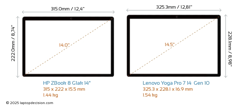 HDMIBoth ZBook 8 G1ak 14" and Yoga Pro 7 14 Gen 10 feature an HDMI port (1x HDMI 2.1) for connecting to external monitors.