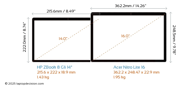 HDMIBoth ZBook 8 G1i 14" and Nitro Lite 16 feature an HDMI port (1x HDMI 2.1) for connecting to external monitors.
