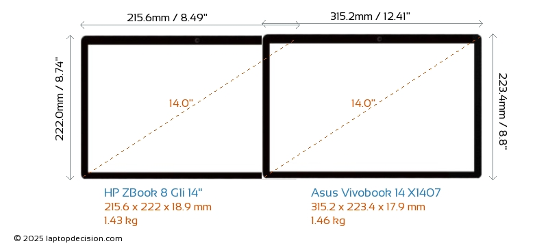 Thunderbolt ZBook 8 G1i 14" is equipped with Thunderbolt 4 port. Vivobook 14 X1407 does not have Thunderbolt port.