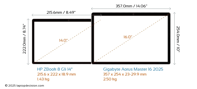 HDMIBoth ZBook 8 G1i 14" and Aorus Master 16 2025 feature an HDMI port (1x HDMI 2.1) for connecting to external monitors.