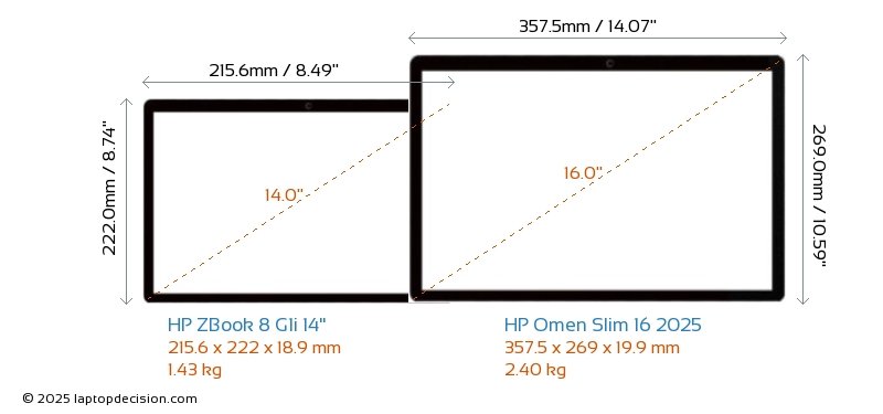 HDMIBoth ZBook 8 G1i 14" and Omen Slim 16 2025 feature an HDMI port (1x HDMI 2.1) for connecting to external monitors.
