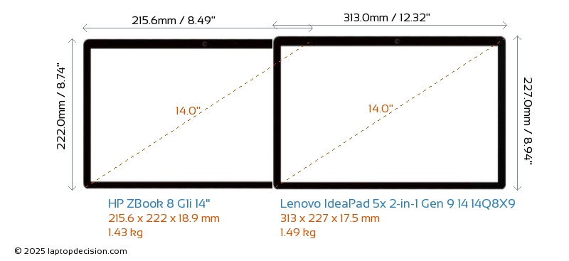 HDMIBoth ZBook 8 G1i 14" and IdeaPad 5x 2-in-1 Gen 9 14 14Q8X9 feature an HDMI port (1x HDMI 2.1) for connecting to external monitors.