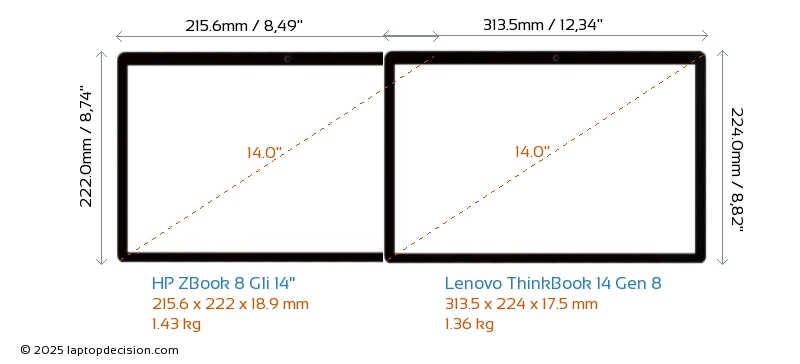 HDMIBoth ZBook 8 G1i 14" and ThinkBook 14 Gen 8 feature an HDMI port (1x HDMI 2.1) for connecting to external monitors.