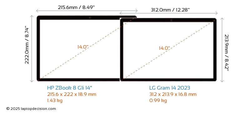 HDMIBoth ZBook 8 G1i 14" and Gram 14 2023 feature an HDMI port. ZBook 8 G1i 14" offers 1x HDMI 2.1, while Gram 14 2023 offers 1x HDMI 2.0.