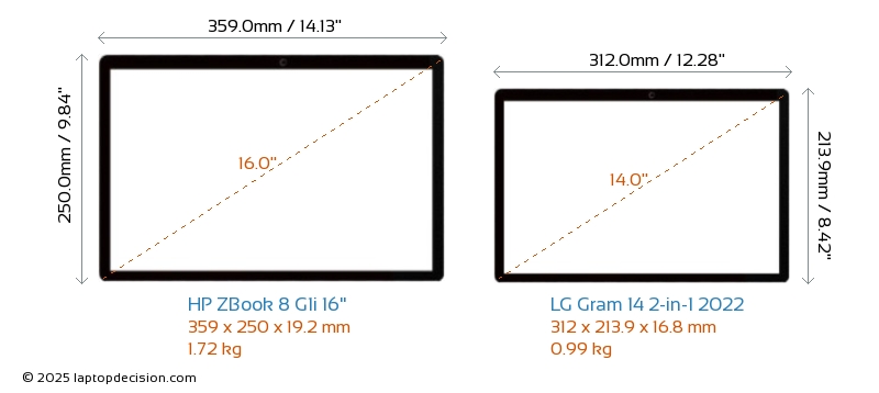 HDMIBoth ZBook 8 G1i 16" and Gram 14 2-in-1 2022 feature an HDMI port. ZBook 8 G1i 16" offers 1x HDMI 2.1, while Gram 14 2-in-1 2022 offers 1x HDMI 2.0.