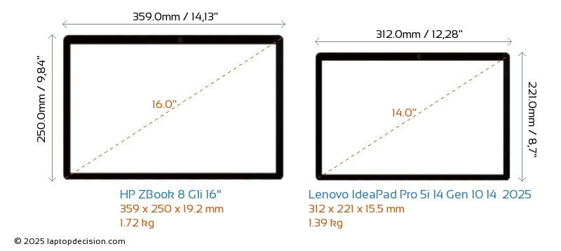 Audio JackBoth ZBook 8 G1i 16" and IdeaPad Pro 5i 14 Gen 10 14 2025 are equipped with a 3.5mm Audio Jack, providing seamless connection to headphones and speakers.