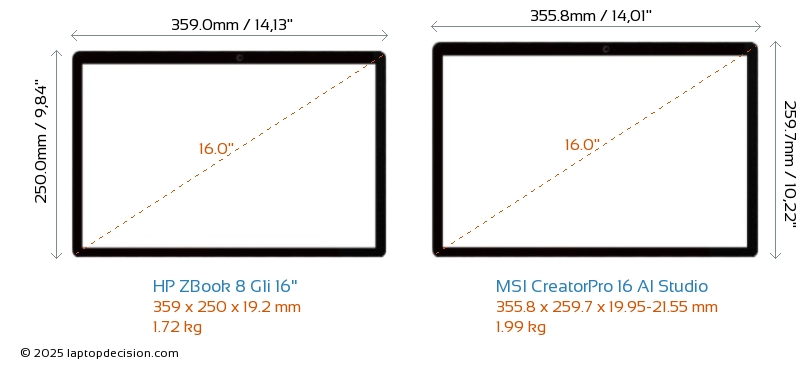 HDMIBoth ZBook 8 G1i 16" and CreatorPro 16 AI Studio feature an HDMI port (1x HDMI 2.1) for connecting to external monitors.