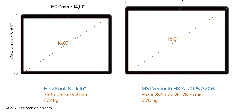 HDMIBoth ZBook 8 G1i 16" and Vector 16 HX AI 2025 A2XW feature an HDMI port (1x HDMI 2.1) for connecting to external monitors.