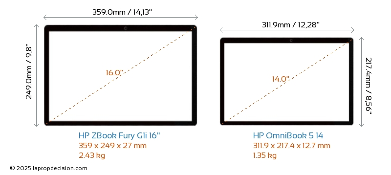 HDMI ZBook Fury G1i 16" features an HDMI port (1x HDMI 2.1) for connecting to external monitors. OmniBook 5 14 does not have an HDMI port.
