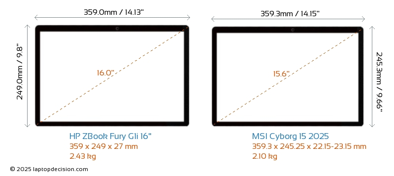 HDMIBoth ZBook Fury G1i 16" and Cyborg 15 2025 feature an HDMI port (1x HDMI 2.1) for connecting to external monitors.