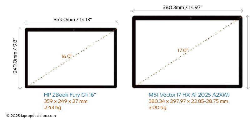 HDMIBoth ZBook Fury G1i 16" and Vector 17 HX AI 2025 A2XWJ feature an HDMI port (1x HDMI 2.1) for connecting to external monitors.