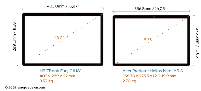 HDMIBoth ZBook Fury G1i 18" and Predator Helios Neo 16S AI feature an HDMI port (1x HDMI 2.1) for connecting to external monitors.