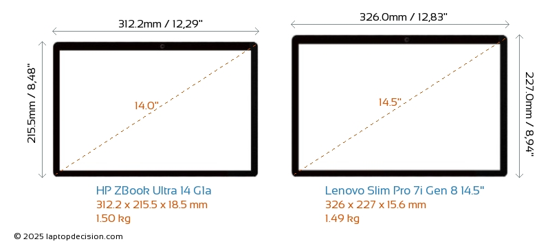 HDMIBoth ZBook Ultra 14 G1a and Slim Pro 7i Gen 8 14.5" feature an HDMI port. ZBook Ultra 14 G1a offers 1x HDMI 2.1, while Slim Pro 7i Gen 8 14.5" offers 1x HDMI 2.0.