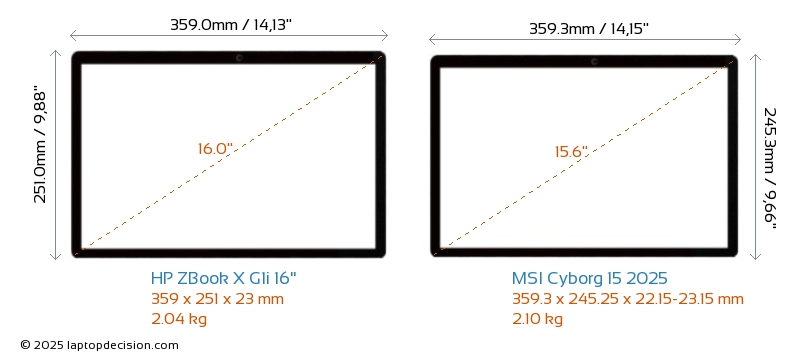 HDMIBoth ZBook X G1i 16" and Cyborg 15 2025 feature an HDMI port (1x HDMI 2.1) for connecting to external monitors.