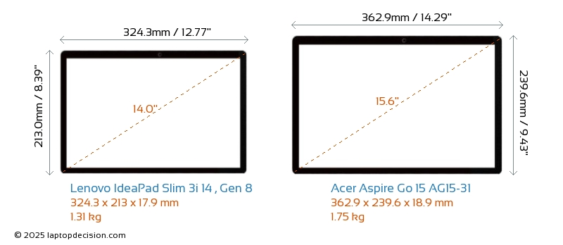 USBBoth IdeaPad Slim 3i 14 , Gen 8 and Aspire Go 15 AG15-31 feature 2x USB 3.2 USB-A ports.Both IdeaPad Slim 3i 14 , Gen 8 and Aspire Go 15 AG15-31 feature 1x USB 3.2 USB Type-C ports.