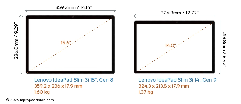USBBoth IdeaPad Slim 3i 15", Gen 8 and IdeaPad Slim 3i 14 , Gen 9 feature 2x USB 3.2 USB-A ports.Both IdeaPad Slim 3i 15", Gen 8 and IdeaPad Slim 3i 14 , Gen 9 feature 1x USB 3.2 USB Type-C ports.
