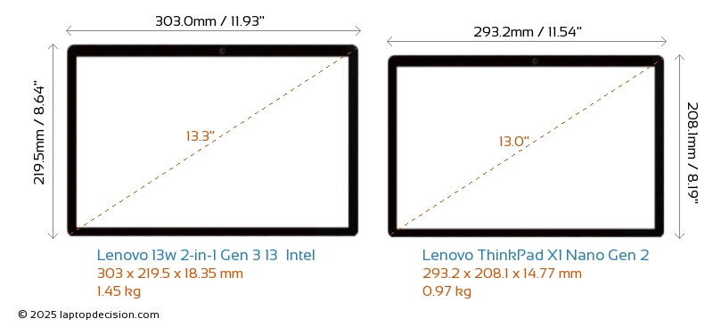 Audio JackBoth 13w 2-in-1 Gen 3 13 Intel and ThinkPad X1 Nano Gen 2 are equipped with a 3.5mm Audio Jack, providing seamless connection to headphones and speakers.
