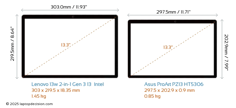 USB 13w 2-in-1 Gen 3 13 Intel is equipped with 2x USB 3.2 USB-A ports. ProArt PZ13 HT5306 does not have USB-A ports.Both 13w 2-in-1 Gen 3 13 Intel and ProArt PZ13 HT5306 feature 2x USB 4.0 USB Type-C ports.