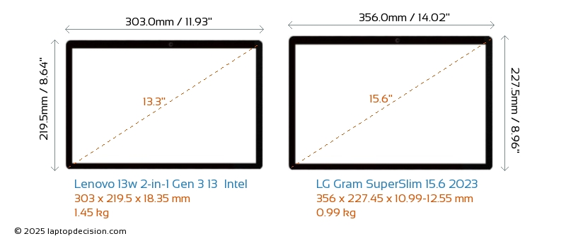 HDMI 13w 2-in-1 Gen 3 13 Intel features an HDMI port (1x HDMI 2.1) for connecting to external monitors. Gram SuperSlim 15.6 2023 does not have an HDMI port.