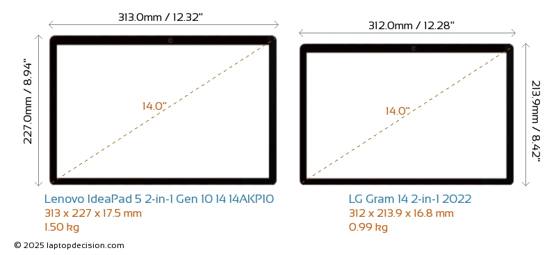 HDMIBoth IdeaPad 5 2-in-1 Gen 10 14 14AKP10 and Gram 14 2-in-1 2022 feature an HDMI port. IdeaPad 5 2-in-1 Gen 10 14 14AKP10 offers 1x HDMI 1.4, while Gram 14 2-in-1 2022 offers 1x HDMI 2.0.
