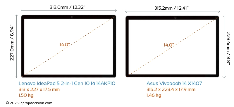 HDMIBoth IdeaPad 5 2-in-1 Gen 10 14 14AKP10 and Vivobook 14 X1407 feature an HDMI port (1x HDMI 1.4) for connecting to external monitors.