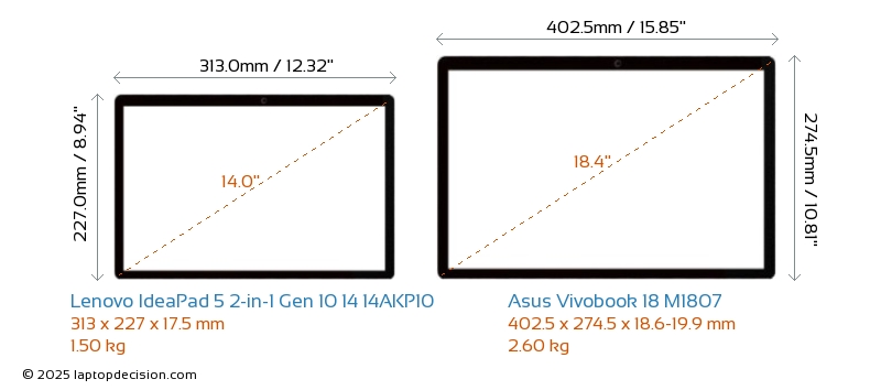 USBBoth IdeaPad 5 2-in-1 Gen 10 14 14AKP10 and Vivobook 18 M1807 feature 2x USB 3.2 USB-A ports.Both IdeaPad 5 2-in-1 Gen 10 14 14AKP10 and Vivobook 18 M1807 feature 2x USB 4.0 USB Type-C ports.