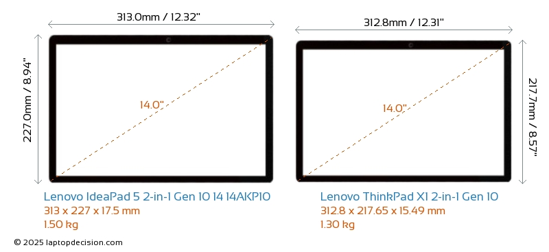 HDMIBoth IdeaPad 5 2-in-1 Gen 10 14 14AKP10 and ThinkPad X1 2-in-1 Gen 10 feature an HDMI port. IdeaPad 5 2-in-1 Gen 10 14 14AKP10 offers 1x HDMI 1.4, while ThinkPad X1 2-in-1 Gen 10 offers 1x HDMI 2.1.